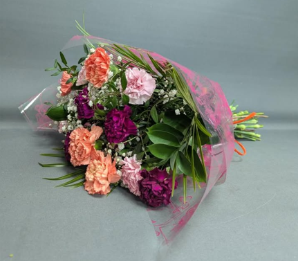 This bouquet is gift wrapped in cellophane and finished with a bow